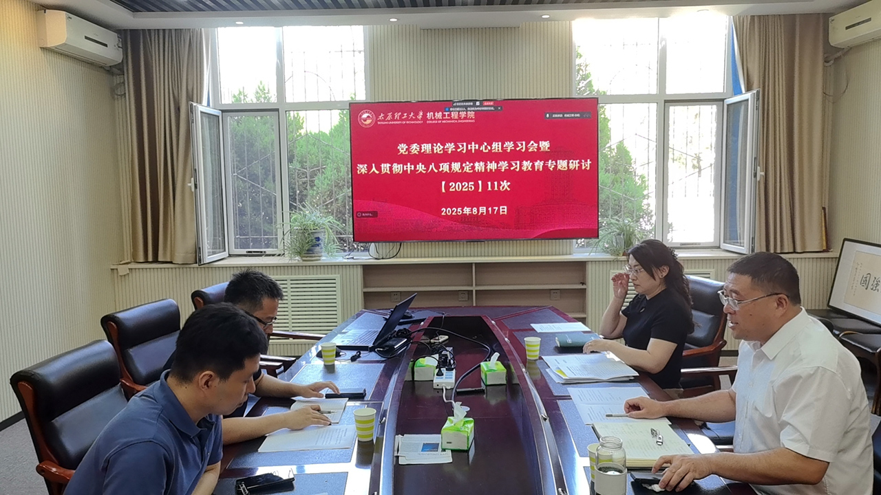 8月17日上午,院党委在机械馆二层一号会议室召开2025年第十一次理论学习中心组学习会暨深入贯彻中央八项规定精神学习教育专题研讨。院领导班子参加会议。院党委书记武佐君主持会议并讲话。