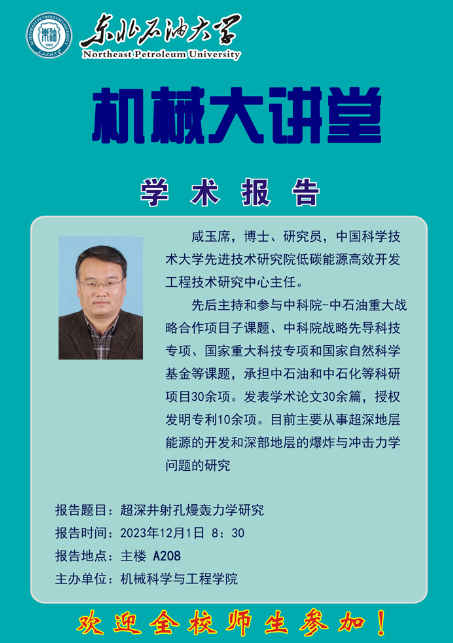 "机械大讲堂"2023年第四期 中国科学技术大学咸玉席研究员