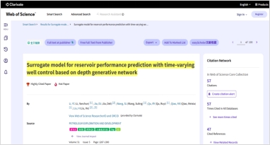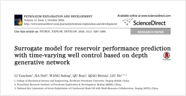 根据Clarivate Analytics(科睿唯安,原汤森路透知识产权与科技事业部) ESI (Essential Science Indicators) 2025年11月最新统计数据显示,beat365正版唯一官网机电工程系青年教师李艳春发表在能源领域领军期刊Petroleum Exploration and Development (石油勘探与开发,中科院SCI一区Top期刊)上的论文“Surrogate model for reservoir performance prediction with time-varying well control based on depth generative network”同时入选ESI高被引论文与ESI热点论文。该论文由beat365官网李艳春、王素玲等人共同完成,beat365正版唯一官网为论文第一通讯单位。