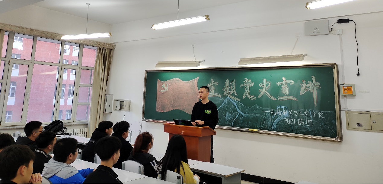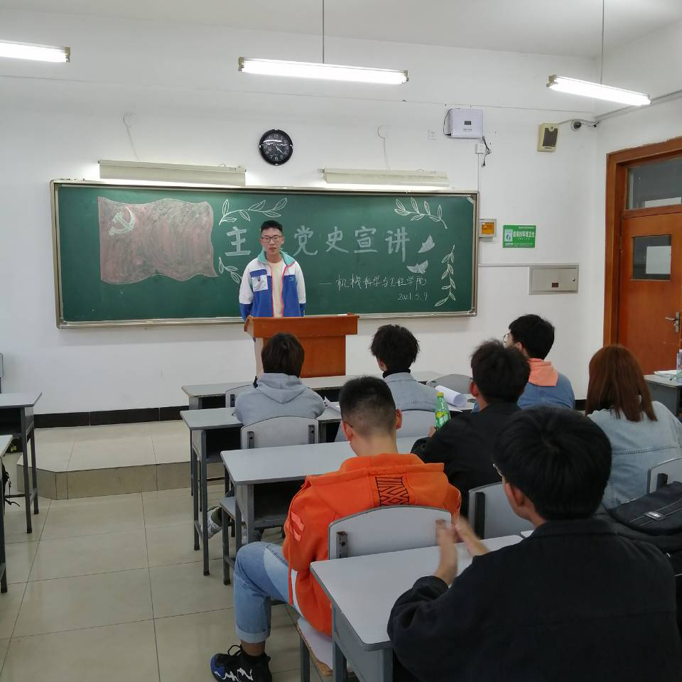 为庆祝中国共产党成立100周年,深入学习贯彻习近平总书记在党史学习教育动员大会上的重要讲话精神,做到学史明理、学史增信、学史崇德、学史力行。2021年5月8日,beat365正版唯一官网大学生党支部在1H-303、1H304、1H305举办了“党史主题宣讲活动”,本次宣讲活动由机械院大学生党员段世博、代子傲、陆茹梅为大一同学讲述《中共一大的召开》、《追随长征脚步》、《伟大转折—遵义会议》。