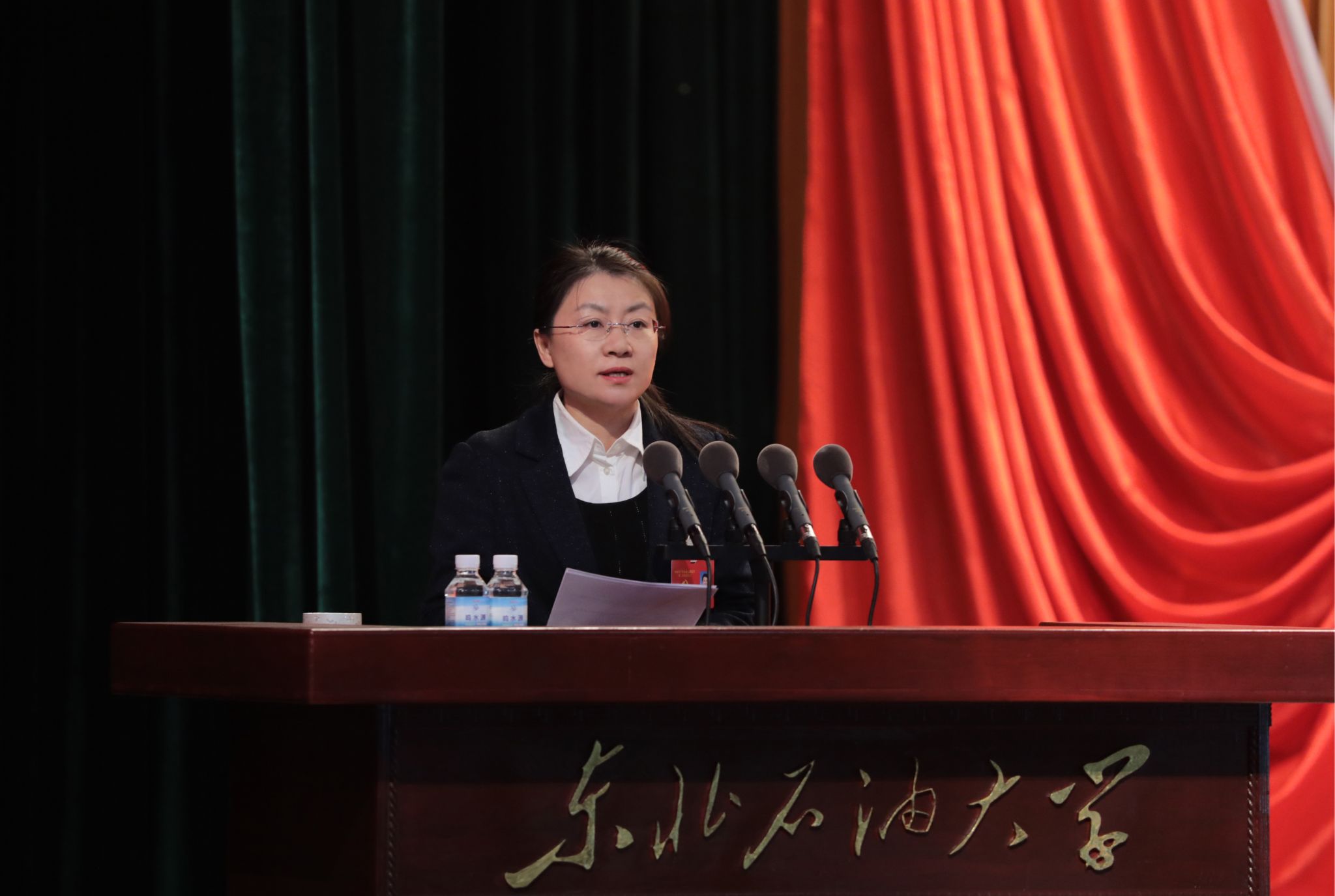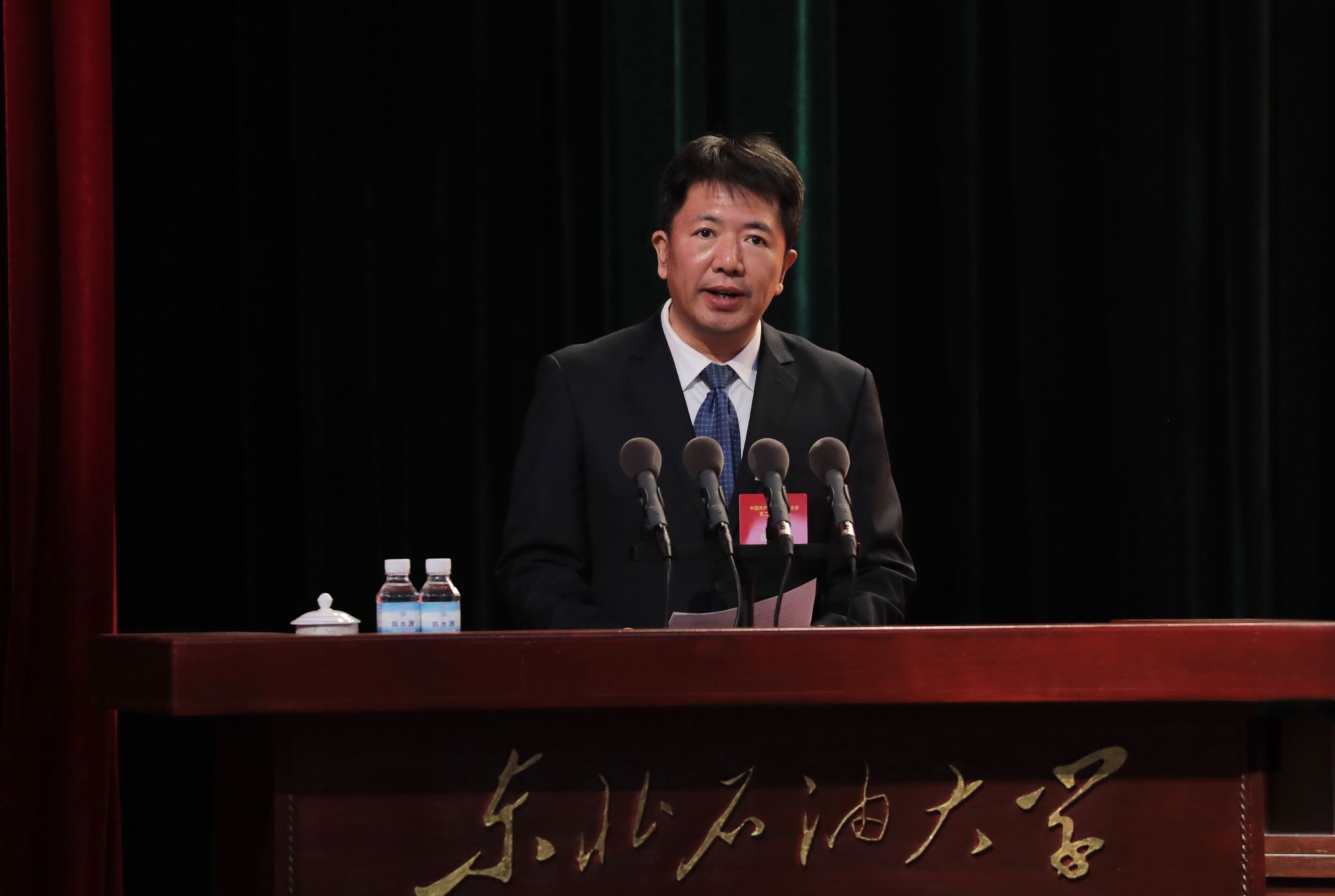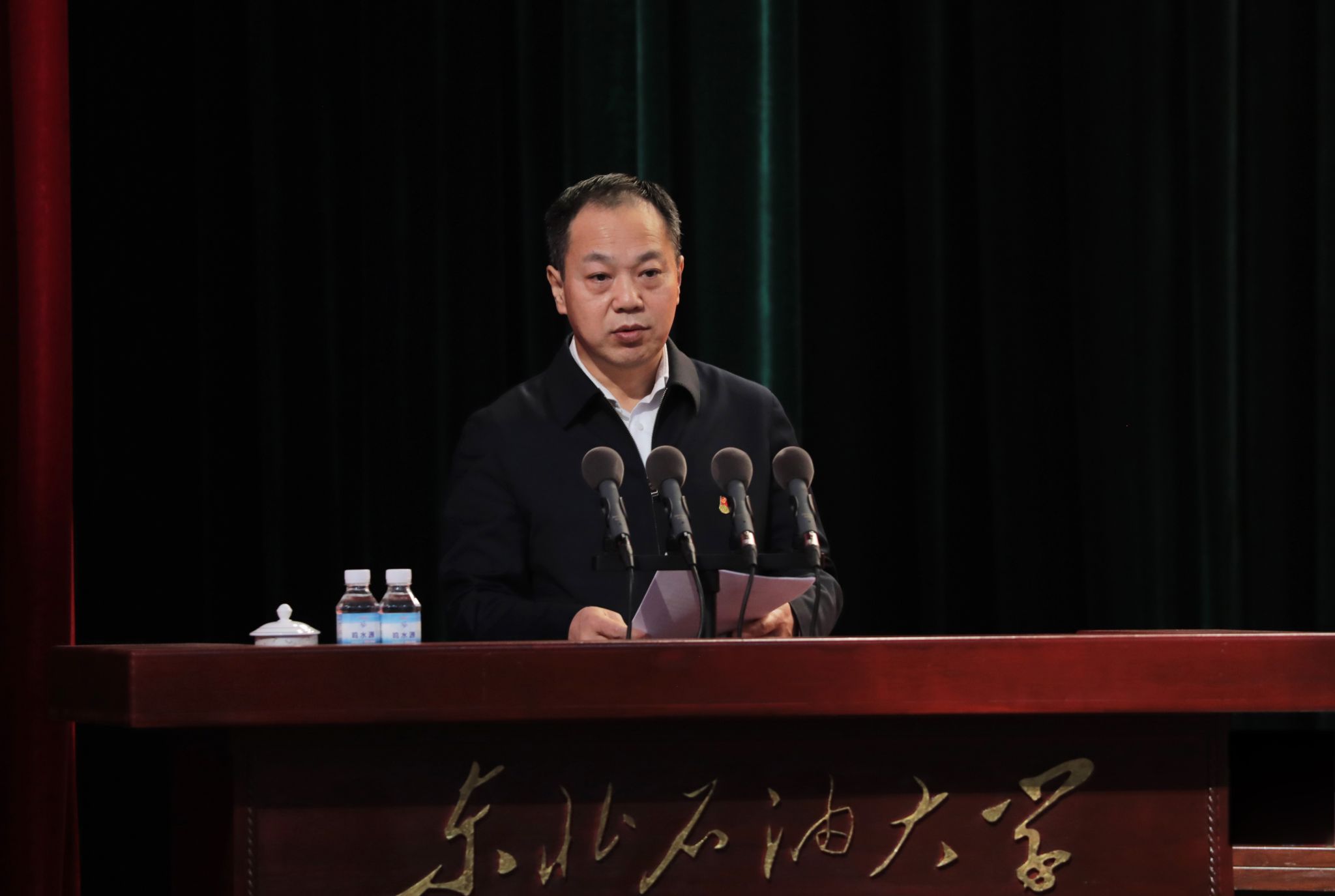 王震代表黑龙江省委教育工委、省教育厅对大会召开表示热烈祝贺。他指出,此次党代会的召开,对于东油科学谋划今后一段时期的发展战略和目标任务具有重大而深远的意义。他对学校新一届党委提出希望:要坚持党的全面领导,把牢社会主义办学方向;要提升办学治校水平,创建国内一流能源大学;要增强高质量发展能力,服务国家战略和龙江振兴发展。