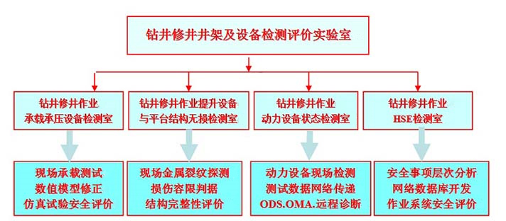 实验室以实现钻井修井作业安全为基础,恶劣环境下承载与承压设备无线动态测试技术、提升设备与平台结构损伤可视化无损检测技术、复杂载荷下旋转与往复设备在线监测故障远程诊断技术为发展方向,建成一个国内领先、国际上具有影响的钻井修井作业安全技术创新平台,为在全国各油田钻井修井作业安全生产提供理论依据与技术指导并最终实现产业化目标。